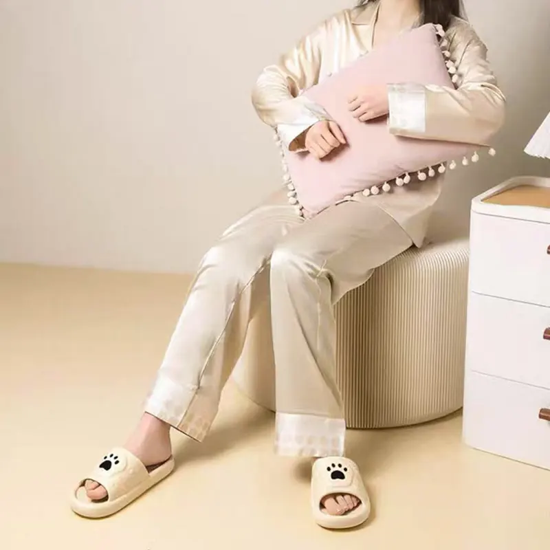 รองเท้าแตะรอยเท้าน่ารักของเราสวมใส่ได้อย่างง่ายดายนำจังหวะที่ผ่อนคลายมาสู่ชีวิตและสัมผัสของความน่ารัก ความหนาเพียงอย่างเดียวให้ความสะดวกสบายที่เพิ่มขึ้นทำให้เท้าของคุณรู้สึกนุ่มนวล พื้นรองเท้าที่อ่อนนุ่มและสปริงช่วยให้การเดินเล่นอย่างสะดวกสบายผ่านเมฆด้วยความรู้สึกที่นุ่มนวลและเด้ง